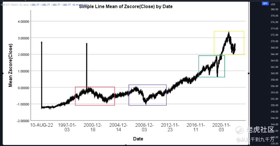 好吧,九千君还是要预测一下。那么,最好的方法是绘制SPY的Z-Score的斜线。这样做的结果是这样的。