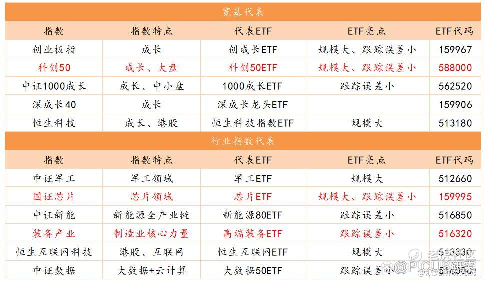 为了方便大家对成长投资的主要方向有个底,玩主整理了一份热门成长风格ETF名单,覆盖了宽基指数和行业主题指数,大家可以保存下。