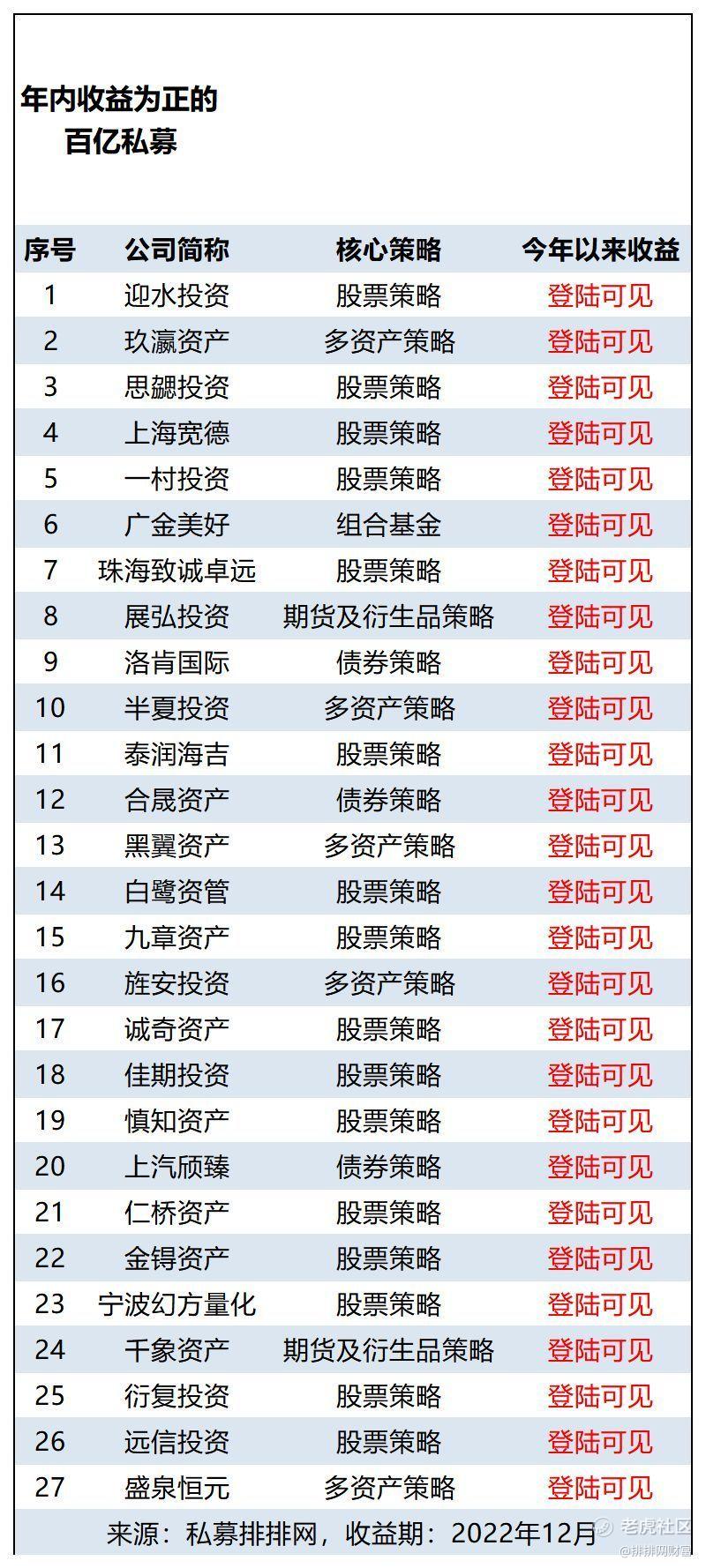其中,12月有业绩更新、旗下运行产品数在3只及以上且能够统计年内业绩数据的80家百亿私募中,仅27家取得了年内正收益。