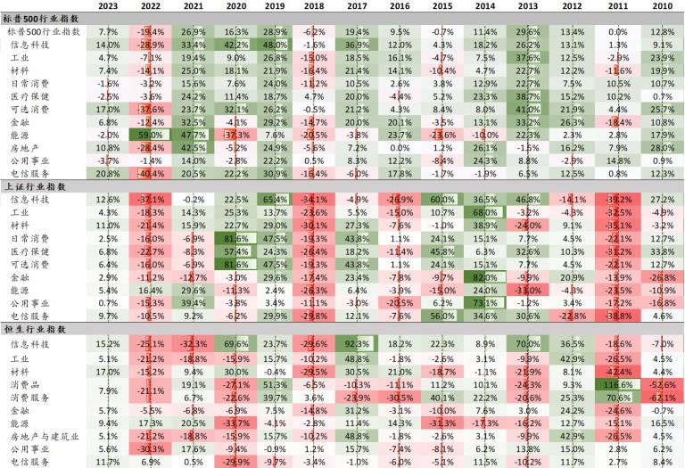 附录4: 主要股票市场各行业板块表现(年度)