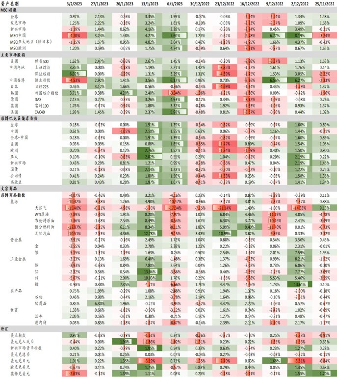 附录1: 主要大类资产表现(周度)