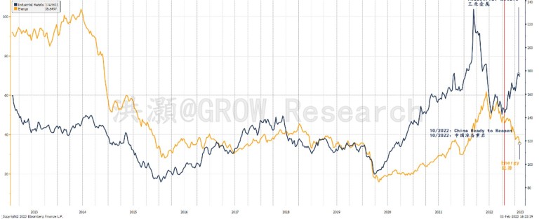 图表2: 金属和能源之间的表现分歧。