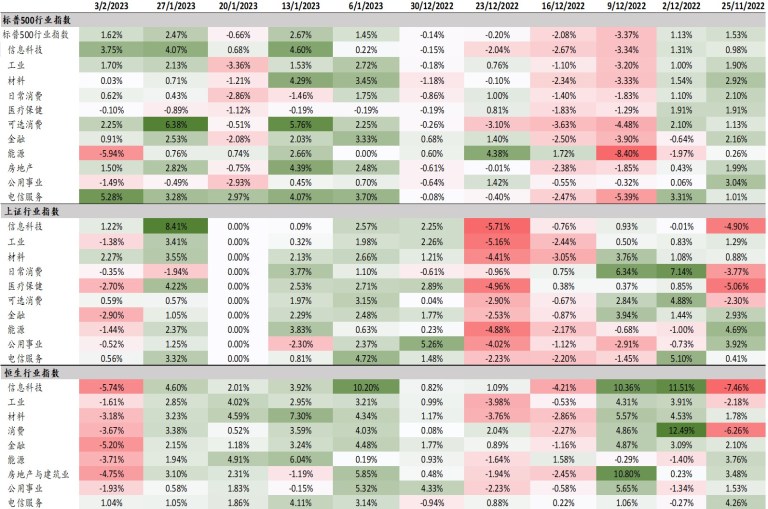 附录3: 主要股票市场各行业板块表现(周度)