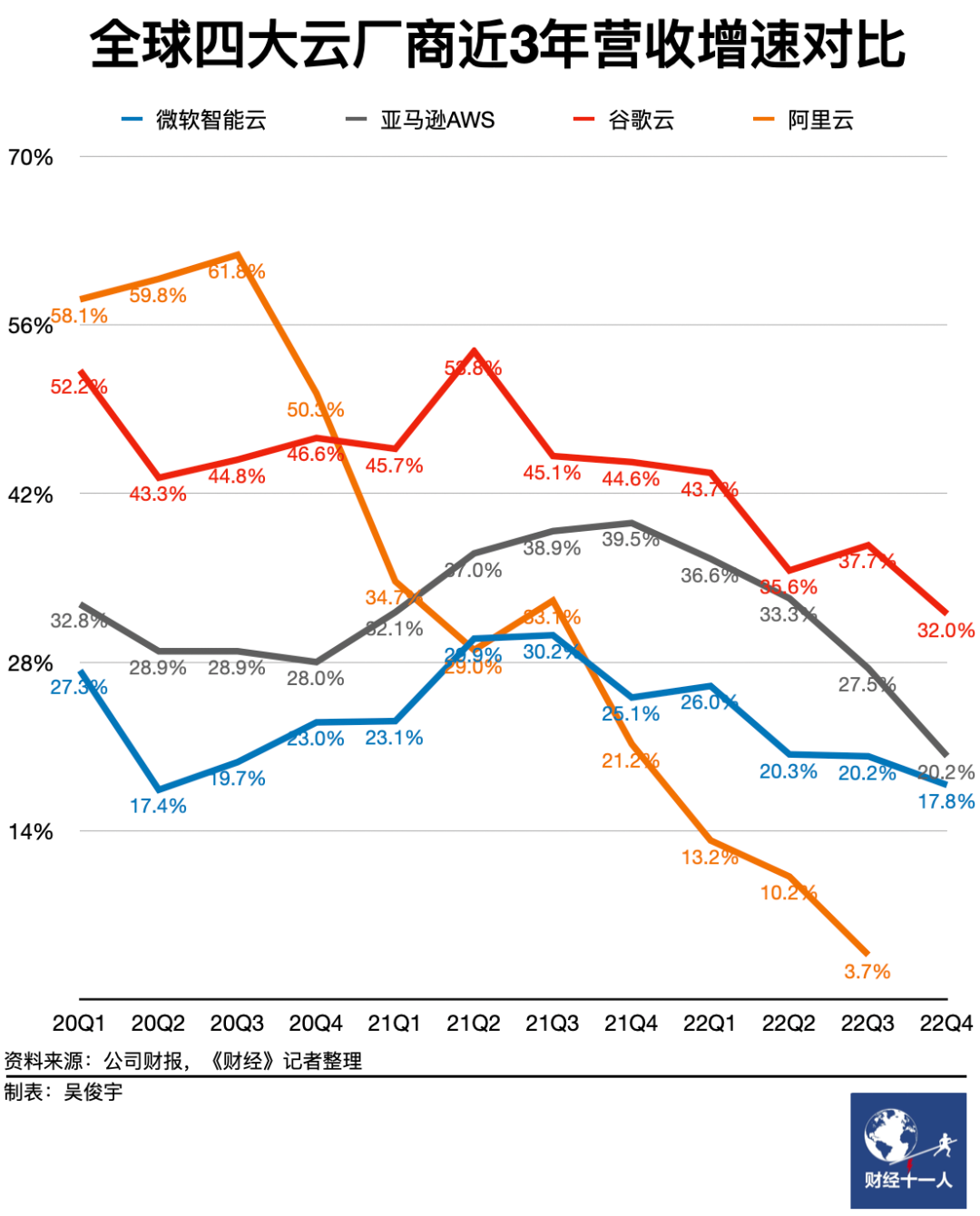 一位曾任职多家外资数字化企业的中国云厂商人士对《财经十一人》表示,中国云巨头正在调整期,迫在眉睫的问题是低增长、低利润,而且,可见的未来,中国云厂商仍然面临下阶段的高投入。