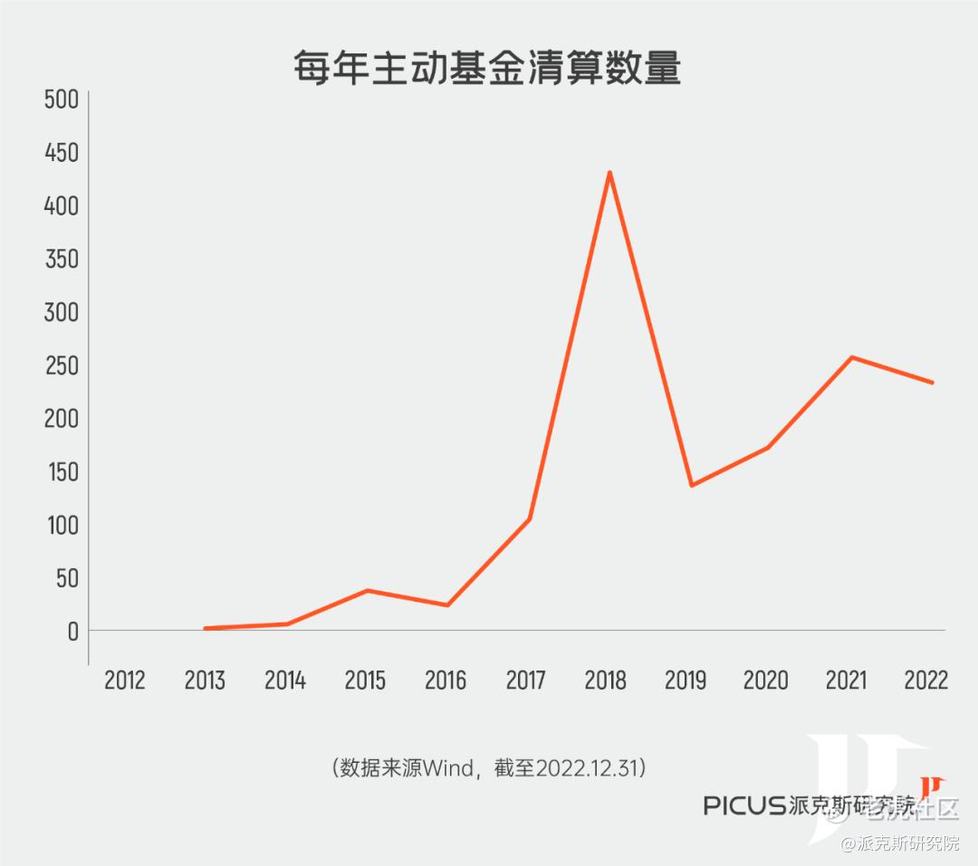 2022年全市场共有233只基金被清算,数量少于2021年与2018年。其中清算的股票型基金数量为56只,是自2015年以来的最高值,可见在去年做主动权益投资实在不容易。