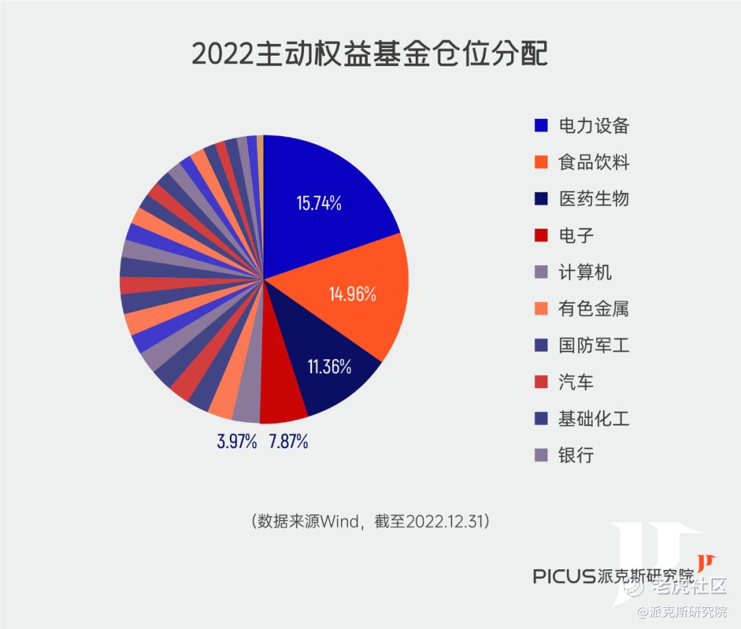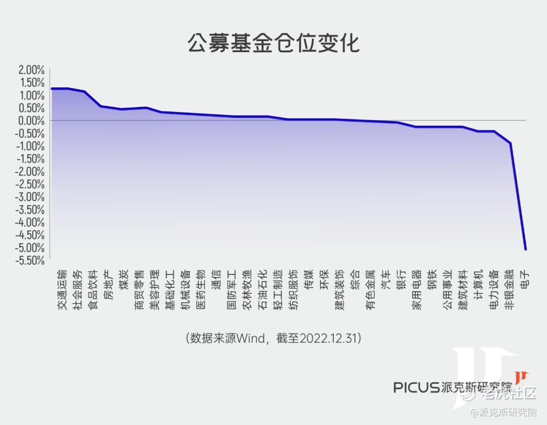 而在不同行业的布局上,电子即半导体是公募基金2022年减仓最多的行业,仓位少了5%;去年的热点煤炭、房地产并未被公募基金大举加仓,仓位仅加了约0.5%。