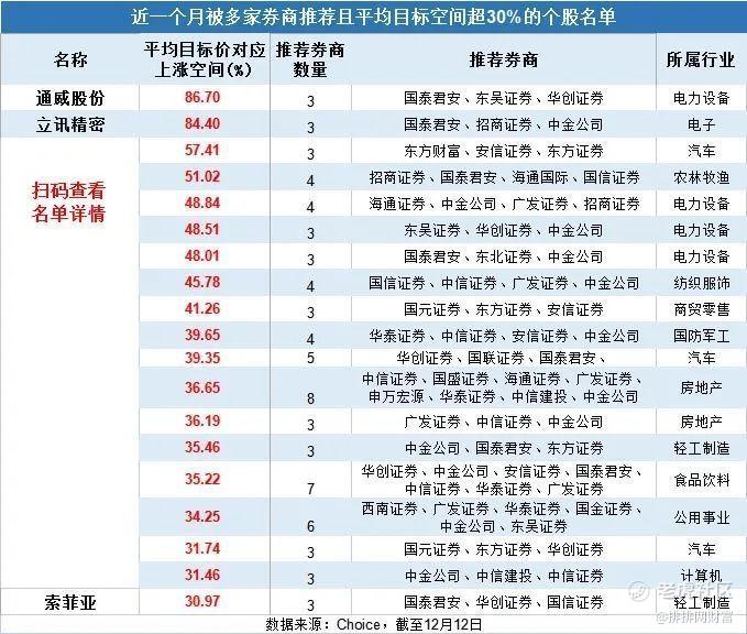 近1个月内,券商研报共给予了692家公司的目标价高于12月12日的收盘价,其中有325家公司的目标空间达到30%以上。