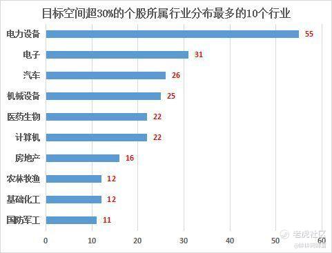 从325家目标空间超30%的公司所属行业分布来看,电力设备行业有55家公司被给予了较高的目标空间。其次,电子、汽车、机械设备等制造业行业,也有超25家公司的目标空间较大。可以说,高端制造行业属于券商看好的潜力牛股的集中营。