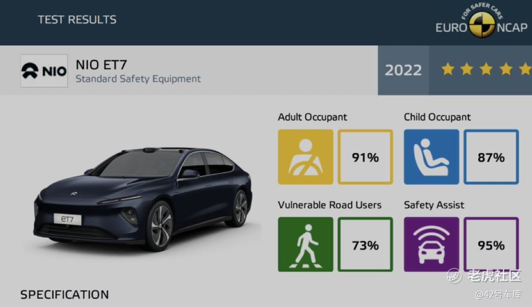 紧接着在在 11 月 17 日的 E-NCAP 碰撞测试上,蔚来 ET7 在多个测试项目中获得了高分。 四项成绩的总分也超过了 WEY Coffee 01(魏牌摩卡)、ORA Funky Cat(欧拉好猫)与 BYD ATTO 3(元 PLUS),成为了目前 E-NCAP 已测试的中国纯电车型中综合评分最高的车型。