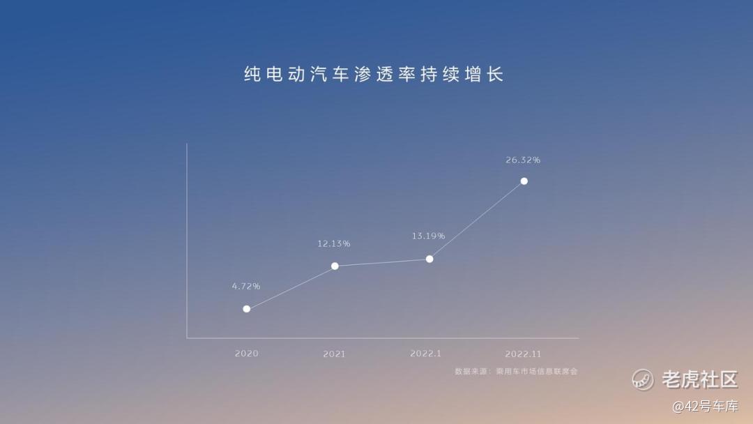阿尔卑斯的出现有客观的必然性。从宏观市场而言,全国每年的乘用车销量预计在 2,000 万辆左右,这是一个相对固定的数字。而今年相比去年,新能源的渗透率从 17% 增长到了 27%。