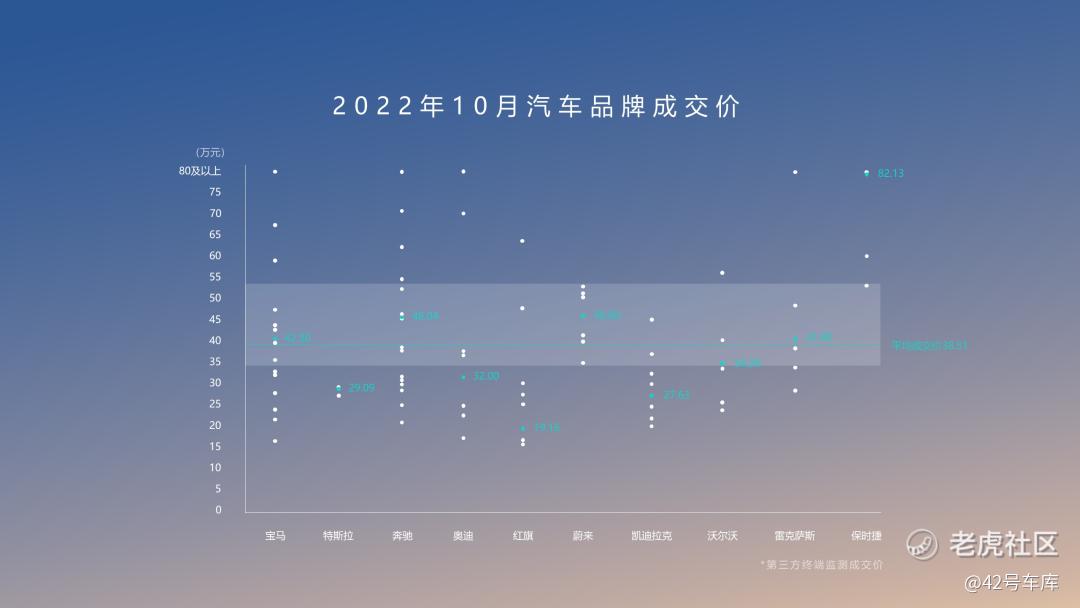 从 10 月的汽车品牌加权平均成交价来看,蔚来以 46.6 万的成绩超过奔驰的 46.04 万元、宝马的 42.30 万、奥迪的 32.00 万。