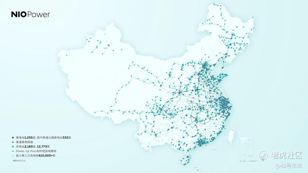 而加电便利程度也的确是在提升,这是一个动态且辩证的问题。截止到今天,蔚来在国内布局了 1,255 座换电站,其中在高速上 332 座;充电站 2,185 座,包含 12,773 根充电桩。