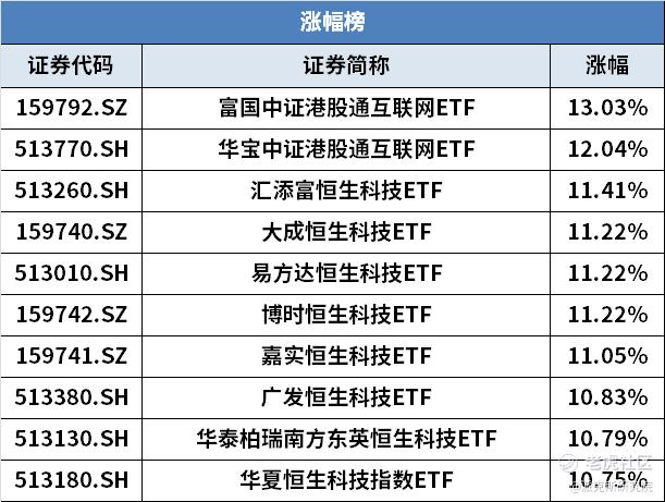 从涨幅排行榜来看,上榜基金涨幅均超10%,港股反弹“如火如荼”。