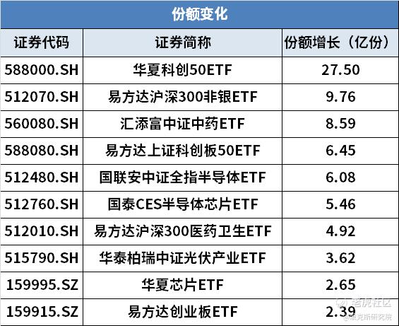 1、ETF份额总体净流出,非货ETF份额流入增长率为-0.50%。