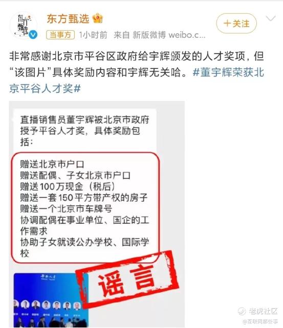 但很快,“丈母娘”们水涨船高的热情引来了官方的注意,董宇辉本人联合东方甄选在社交平台火速予以澄清称:人才奖项为实,但具体奖励内容与董宇辉本人无关。