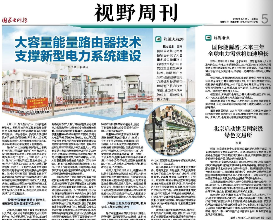 《国家电网报》刊登题为“大容量能量路由器技术,支撑新型电力系统建设”文章