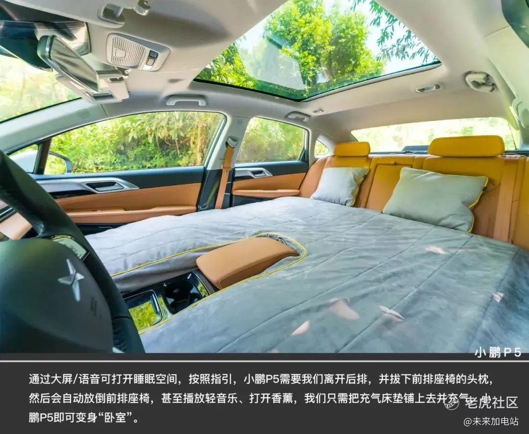 小鹏P5这台车通过前排座椅可以放平的方式,并结合官方的气垫、遮挡和投影,大大强化了“在车内休息”这个场景的实用性。要知道现在很多打工人都有午休的需求,而一台不影响后备箱空间,且可以独立安置单人床的P5,会让车主获得比之前强很多倍的休息体验。