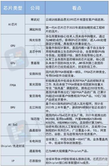 受此利好,像AI芯片、CPU和GPU的行业代表-寒武纪、龙芯中科和景嘉微等近期涨幅超30%+。