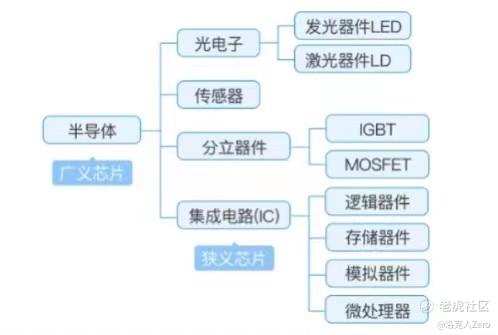 半导体产品分类主要包括光学电子、传感器、分立器件和集成电路这四大类。其中集成电路(IC)又可以细分为逻辑器件、存储器件、模拟器件和微处理器。