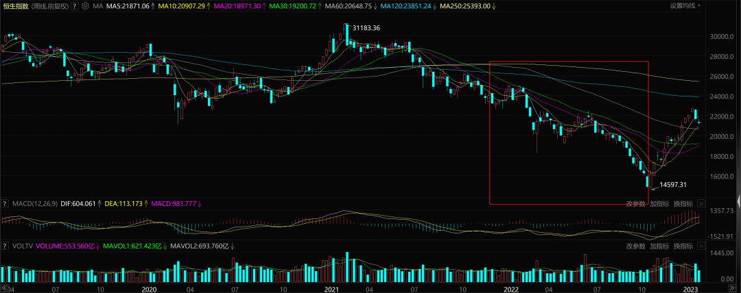 恒指首先反弹,一是预期美联储加息放缓,有望在2023年停止加息,二是超跌反弹。恒指继续上涨有赖于美联储停止加息,资金回流,以及中国经济重新恢复的基本面彻底改善。前者权重更大。