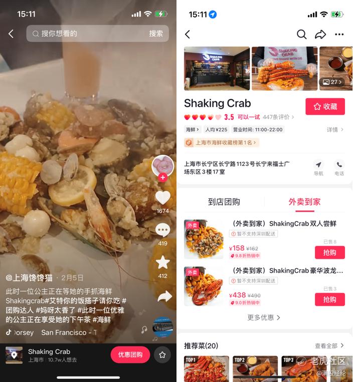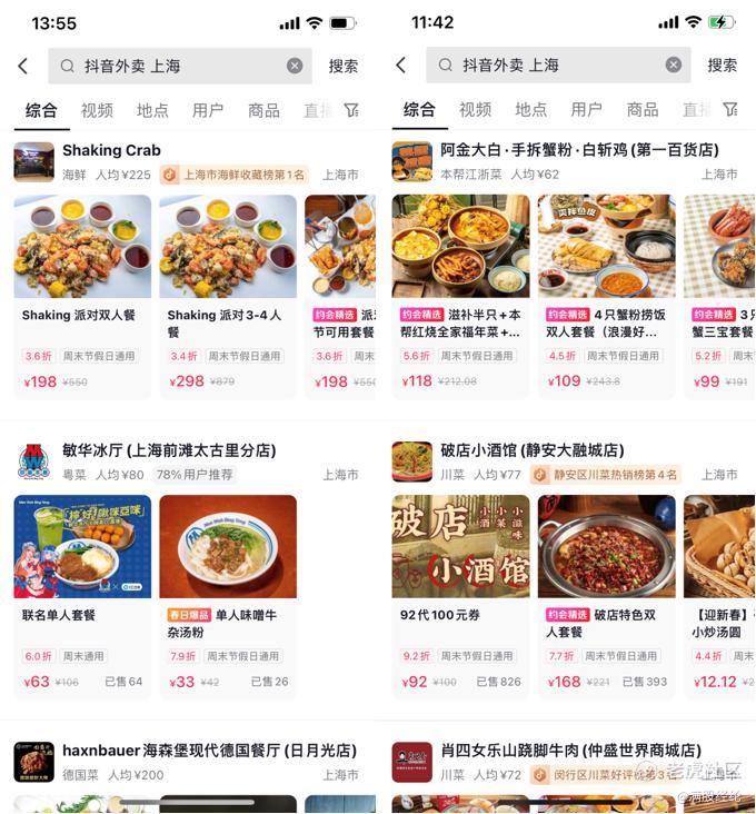 在产品设计方面,则是通过短视频+直播的内容形式,让用户产生购买兴趣,再直接将用户需求导向商家。在美团、饿了么APP上,用户只能通过商家放在购买页面的图片和文字来了解菜品,局限性较大,有时欺骗性也很强。而在抖音,能够以短视频或视频直播的形式向大家全方位展示菜品,不仅可以让用户更加全面地真实地了解商家的出餐水平,若拍摄得当,还能更大限度地激发人们的购买欲望。