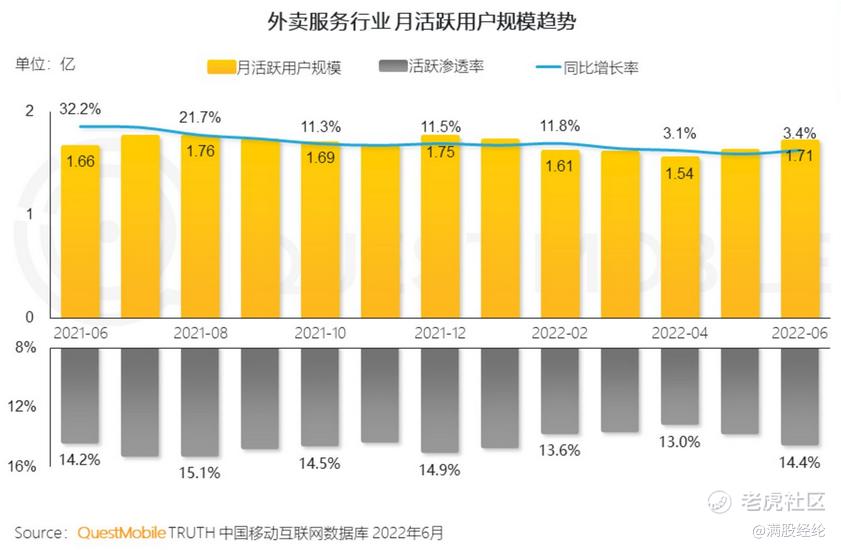 从抖音自身来看,它迫切需要寻找流量变现的新途径,增加业务收入。目前抖音的主要变现路径之一是抖音电商,然而抖音电商的广告内容加载率已逼近上限15%,若再提高该比例则会影响用户的留存。为了突破广告收入的天花板,抖音就需要开拓新的市场来寻找增量,而稳定且庞大的外卖市场就是个不错的选择。根据机构QuestMobile发布的《2022中国移动互联网半年大报告》显示,外卖行业的月活跃用户规模居高不下,活跃渗透率也还有进一步提高的可能性。若能分到外卖市场的“一杯羹”,必然会提升抖音全站的流量变现能力和效率,为抖音商业化带来更多增量。