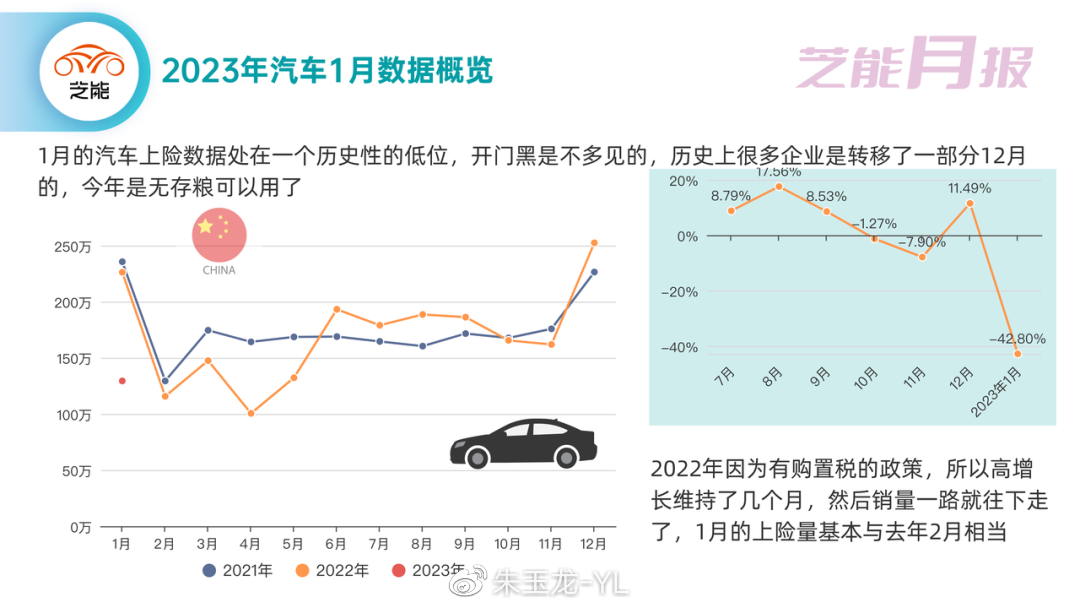 1月的汽车上险数据处在一个历史性的低位,哪怕是比去年过年的2月的数据也高不了多少。中国汽车销量史上,年初的开门黑是不多见的,历史上很多企业是转移了一部分12月的量到下一年,今年是无存粮可以用了。