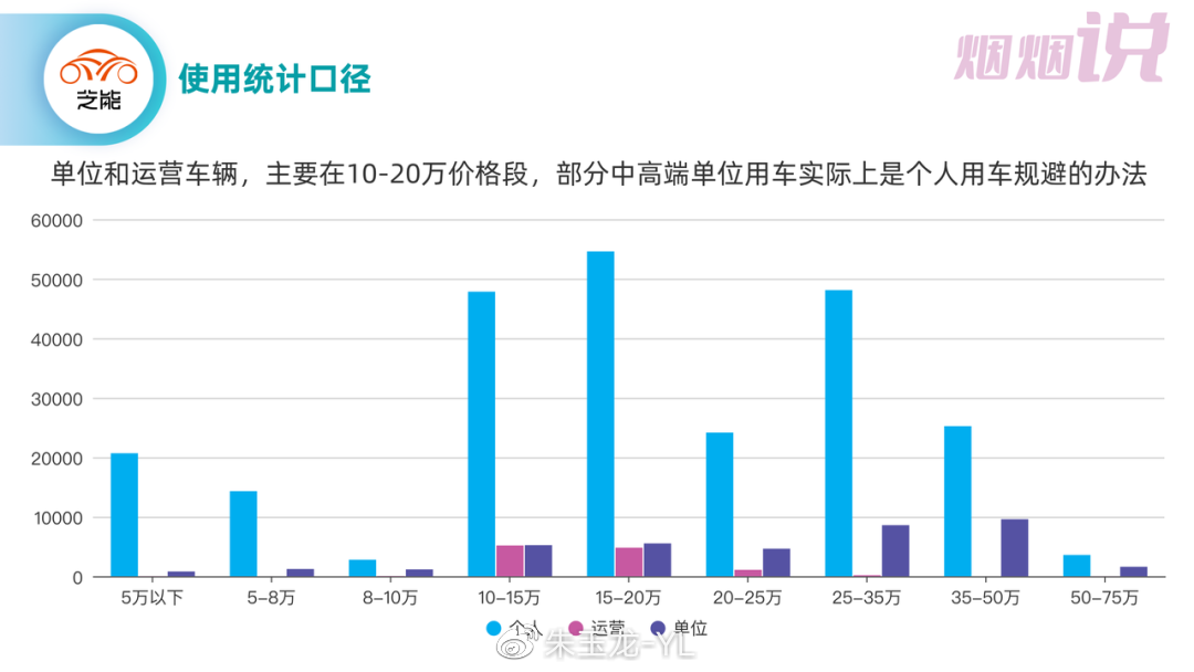 单位和运营车辆,主要在10-20万价格段,部分中高端的单位用车实际上是企业主个人用车的转移。