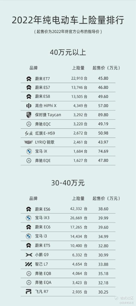 另外,一份《2022年纯电动车上险量排行》表单显示,在40万以上市场中,蔚来ET7、ES7、ES8三款车型包揽前三,打破了传统品牌对“豪华”的定义,在30-40万市场中蔚来ES6、ET5、EC6也处于领先地位。在这一轮的比赛中,蔚来交了一份不错的答卷。