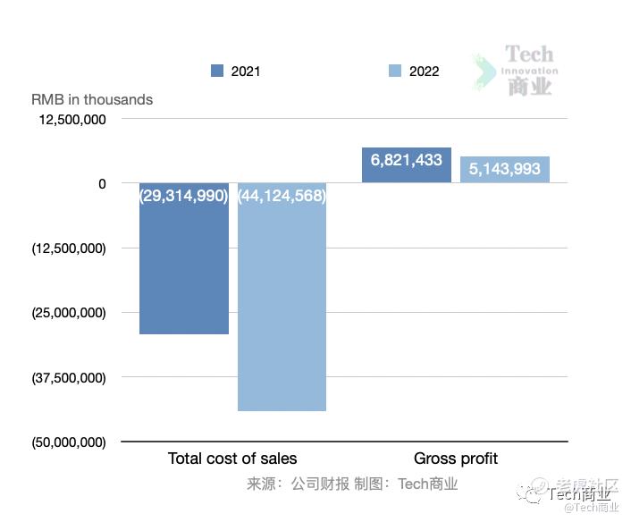 本财年蔚来公司总销售成本为441亿元,同比上一财年同期的293亿元,该项成本增幅为51%。2022财年蔚来公司毛利润为51亿元,上一财年为68亿元,本财年毛利润下降25%。