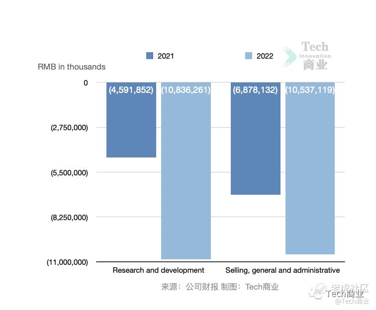 其中本财年蔚来公司研发费用为108亿元,同比上一财年的46亿元,本财年研发费用增幅为136%。销售、一般与行政费用为105亿元,同比上一财年同期的69亿元,该项费用增幅为53%。