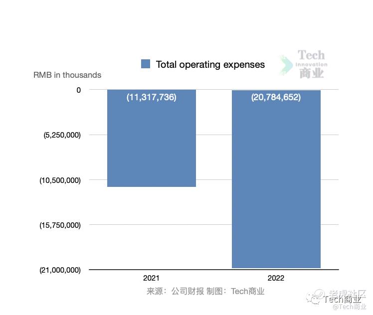 本财年蔚来公司总营业费用为208亿元,上一财年为113亿元,即本财年营业费用增长84%。该费用增幅高于财年收入增幅(36%)。