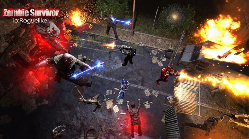 从战斗实机图不难看出,《Zombie Survivor io:Roguelike》不仅没有沿用同类型游戏或马赛克、或简笔画的简约风格,而是转变为更精致写实的风格,而且还在此基础上为角色、场景加入了大量细节设计,包括武器发射时跃动的火光、地图中到处散落的物品,以及大量的建筑等。