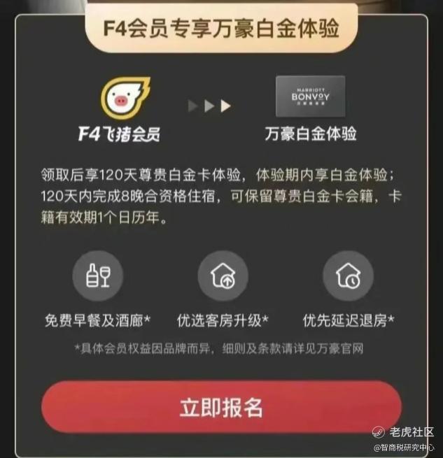 潘哥发现,成为飞猪F4会员后,120天住满8个房晚,就能获得万豪白金卡会籍,级别保留一年。同时,在飞猪上预订指定万豪酒店,还能享受额外的积分赠送。