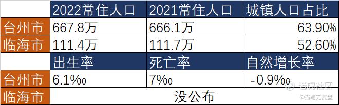 临海市的数据就要再弱一些,常住人口已经呈现下滑的趋势。本来城镇化低意味着发展潜力大,但既然人口都已经在净流出,谈潜力也没意思了。类比的话大概相当于A股营收和利润都同比下跌5-10%的股票,不算暴雷,但持续在下滑。