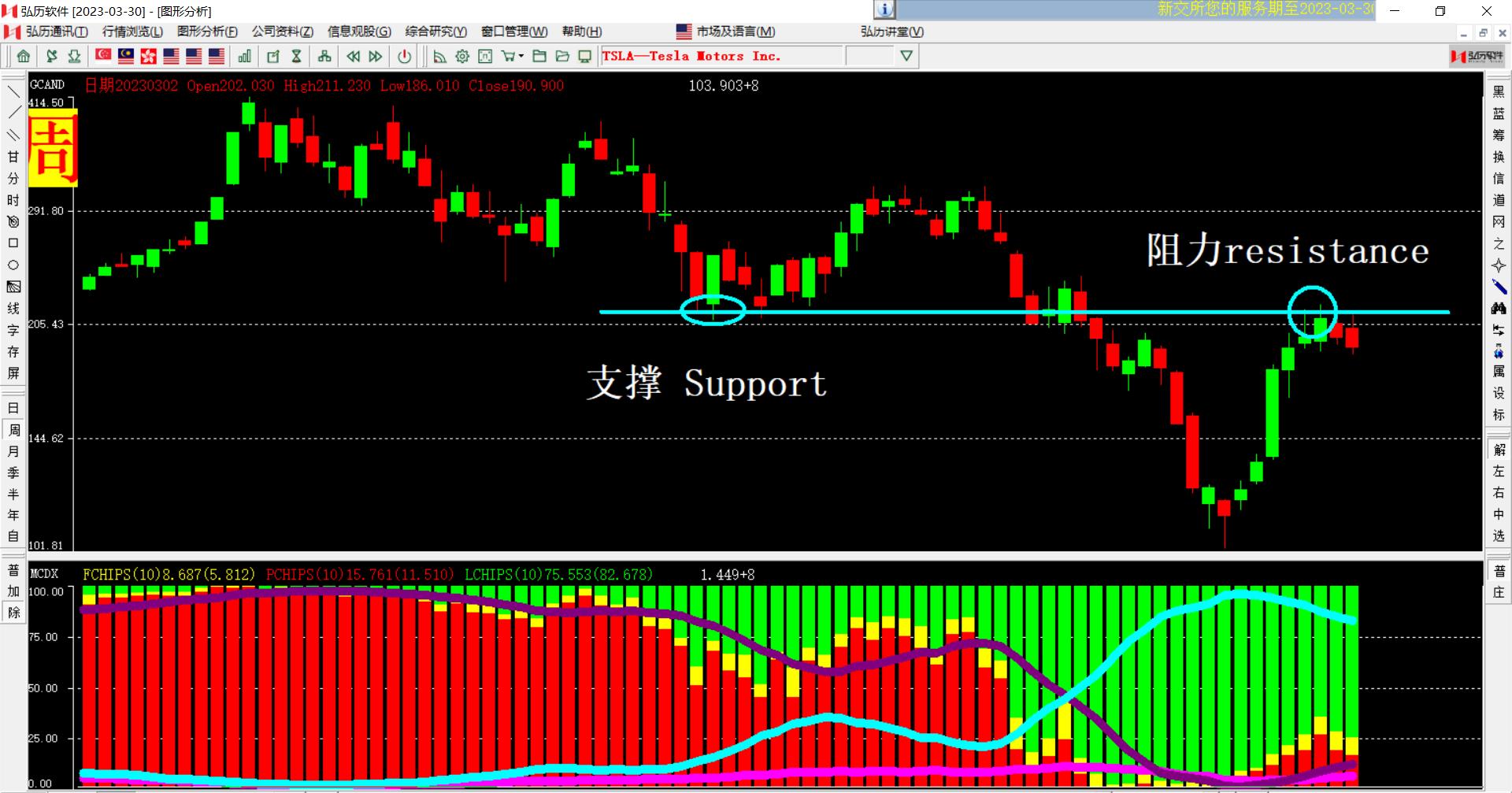 3、从上图三我们可以看到,股价刚好到了前面低点的重要阻力位213美元(2022年5月27日以及6月17