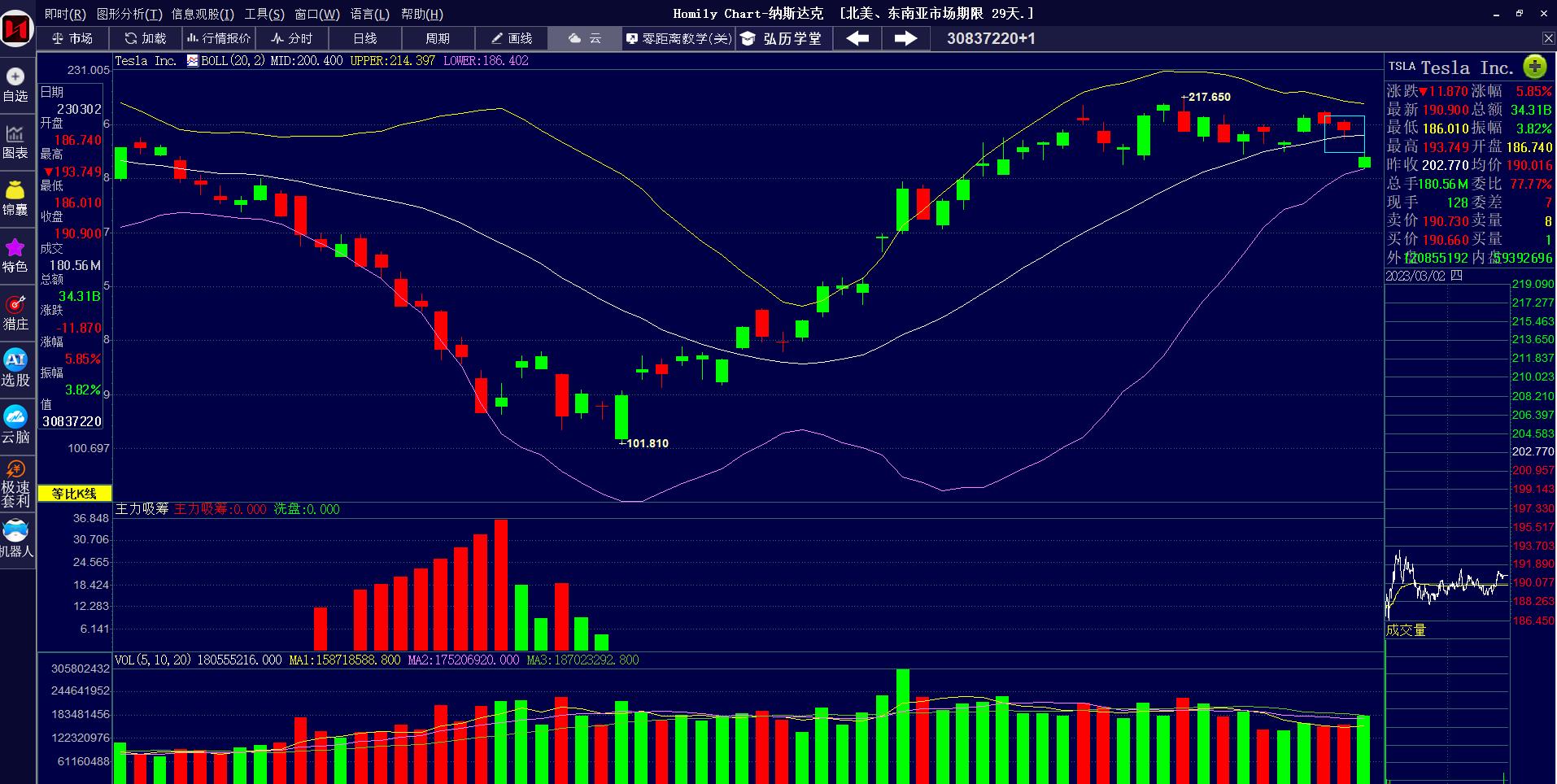 1、从布林线通道来看昨晚已经跌破布林线中轨,意味着上升趋势结束,后面会进入横摆或下跌趋势,若跌破了下轨容易演化成下降趋势