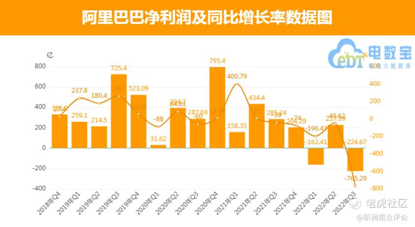 更关键的是,从利润来看,阿里巴巴第三季度归属于普通股股东的净亏损为205.61亿元,净亏损224.67亿元,而2021年同期的净利润为33.77亿元。