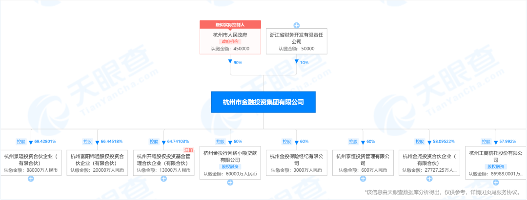 其中,杭金数科于2021年4月更名组建,注册资本10亿元人民币,主要股东为杭州市金融投资集团、杭州金投建设发展有限公司,实际控制人为杭州市人民政府。