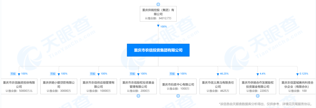 而重庆农信集团的全资控股股东则为重庆供销控股(集团)有限公司,实际控制人为重庆市供销合作总社。