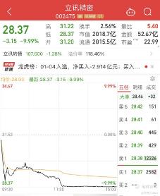 而消费电子行业中的有些公司,受到苹果砍单的原因,当日股价大跌,比如立讯精密跌停,东山精密大跌9.36%。这两家属于标准的果链公司,属于单一大客户绑定的公司。