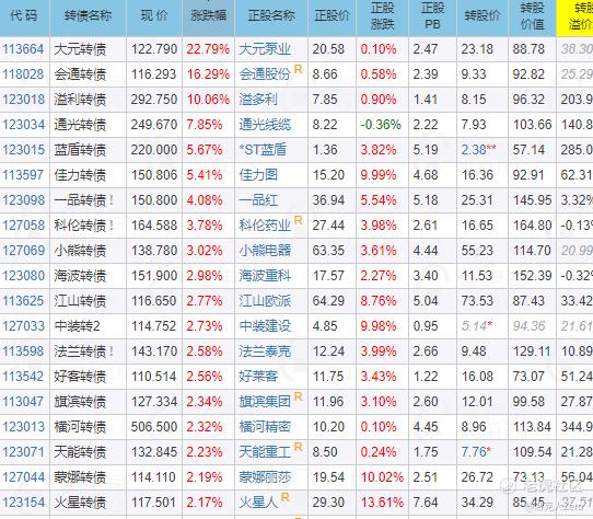 涨幅榜中主要是地产、基建相关的产业链,比如小熊转债、海波转债、江山转债、中装转2、好客转债、旗滨转债等。