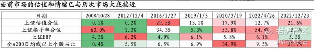 截至2022年12月23日,上证估值分位和ERP等数据已经接近历次市场大底。