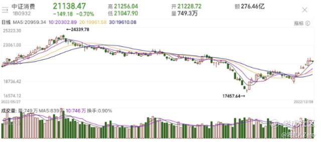 最近一段时间,受K罩逐步宽松放开利好,整个中证消费指数不知不觉开启了连涨模式,无论是以餐饮、品牌连锁店为主的酒店还是机构重仓的白酒或者是食品零食行业都有一波不错的涨幅。