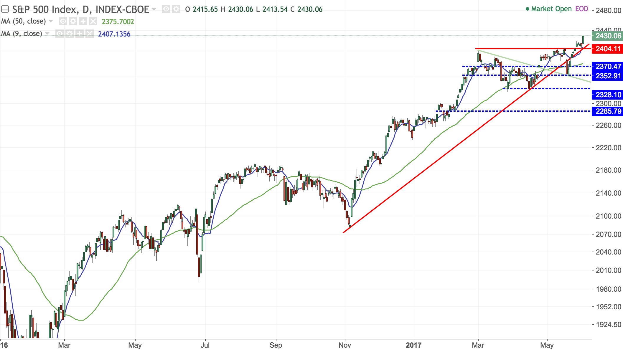 看图反正是突破咯,接下来看2440——其实也不远了,今天白天S&P 500 Futures摸到2437了。