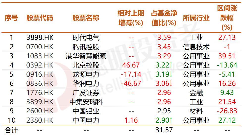 去年四季度减仓了华润电力和龙源电力,增持北京控股46.67%,占基金净值比3.22%。