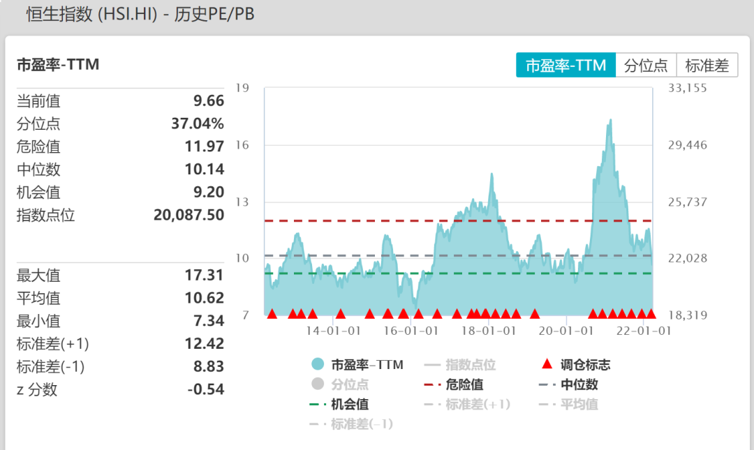由于前期跌幅过大,恒生指数仍处于低估值区间。恒生指数的市盈率已经不足10倍,在十年时间处于37.04%的分位数。