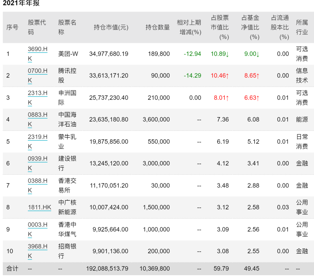 加上距年报披露的截止日期,即2021年12月31日,已经过了三个多月,有些在去年重仓港股的基金或许已经不再高比例投资于港股市场。