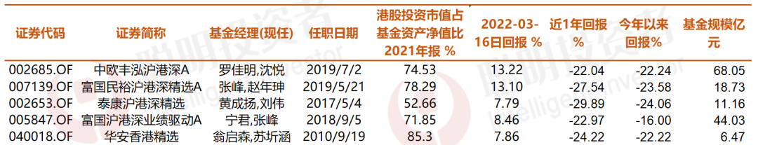 我们选取了港股投资市值占基金资产净值比在2021年报中高于60%的主动型股票类基金。