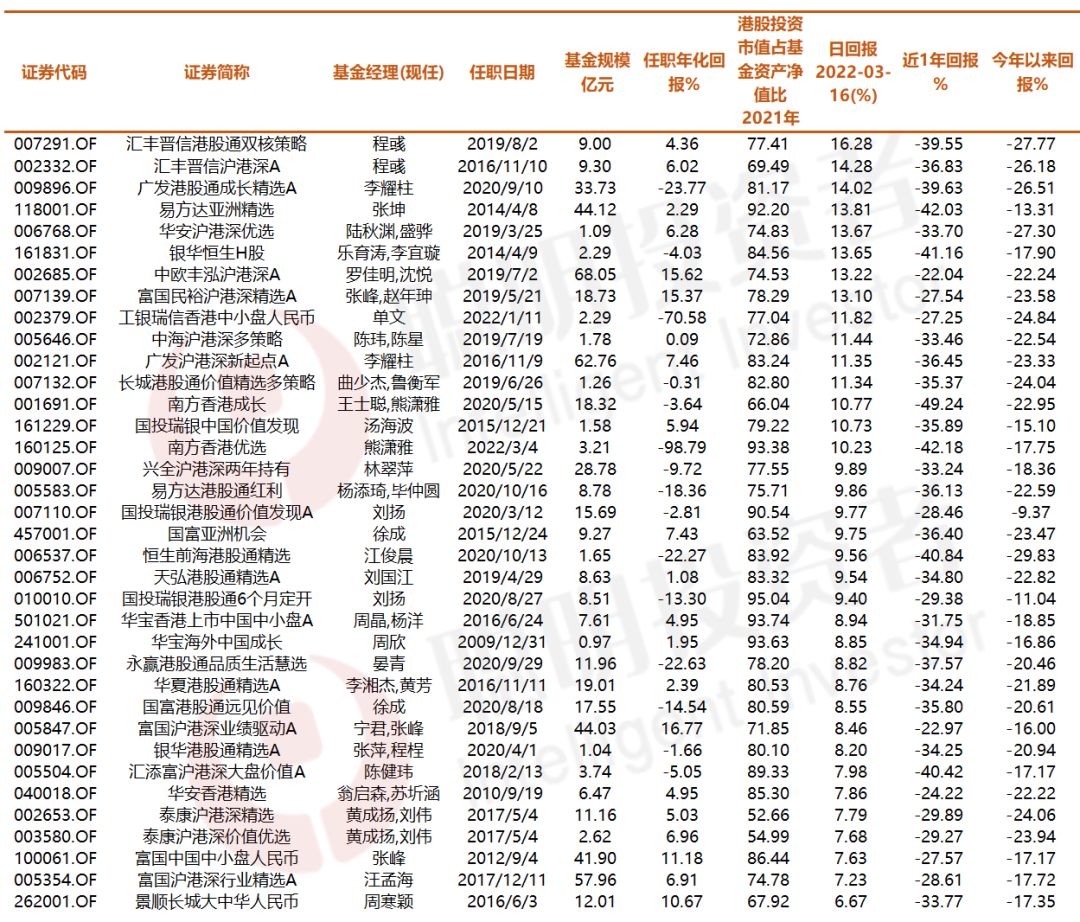 来源:wind,数据截止到2022年3月16日,高浓度港股基金名单
